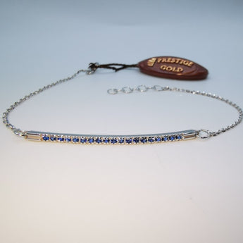 Questo elegante bracciale è realizzato in pregiato oro bianco e arricchito da bellissimi zaffiri, una delle pietre più preziose e resistenti. Un tocco di lusso e raffinatezza per completare qualsiasi outfit. Garantito per l'eternità, questo bracciale è un investimento sicuro e un simbolo di eleganza senza tempo.