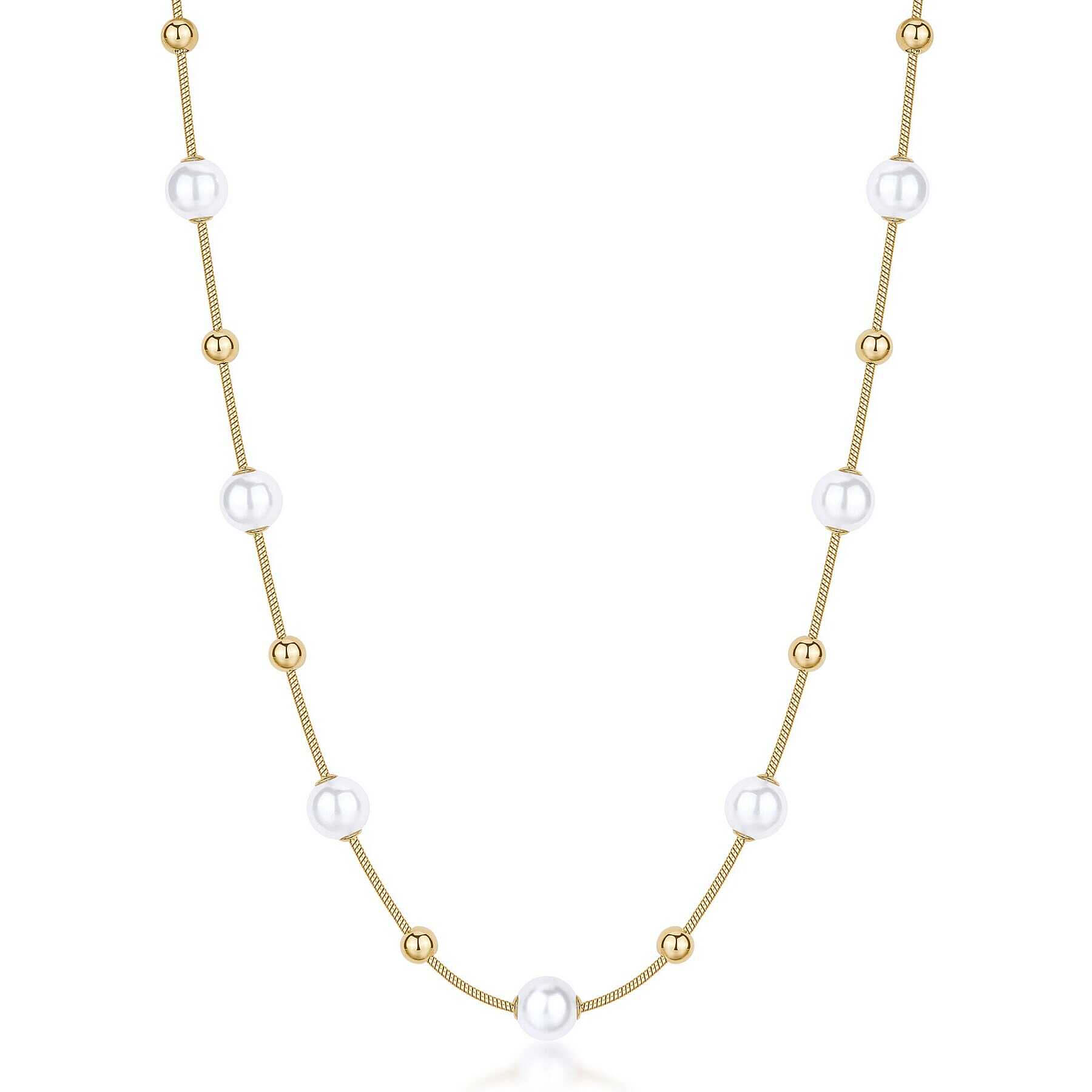 Collana da donna di Brosway della collezione Perfect. Collana in acciaio 316L di colore oro giallo con perle di colore bianco. La chiusura è a moschettone. Misure: 460 mm. La referenza è BPC49
