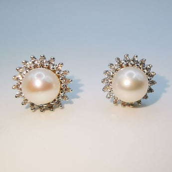 Orechini perla e zirconi oro bianco