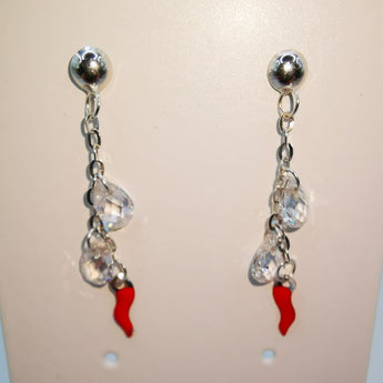 - orecchini zirconi e cornetto rosso
