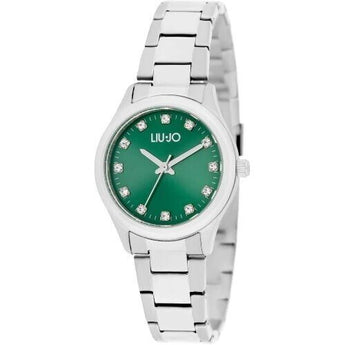 Orologio solo tempo da donna di Liu Jo della collezione Charmant. La cassa è di diametro 32 mm, di colore verde ed è realizzata in acciaio. Il cinturino è di colore argento ed è realizzato in acciaio. L'impermeabilità è di 5atm ed il movimento è miyota cal.2035. La referenza è TLJ2110.