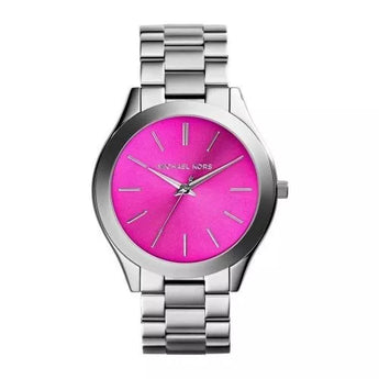 Modello Con Cassa Rotonda In Acciaio. Cassa Del Diametro Di 42 . Il Quadrante È Di Colore fucsia E Vetro Trasparente. La cassa È Realizzata In Acciaio Inossidabile Di Colore . Il Cinturino È In Acciaio Inossidabile Di Colore argento . La Resistenza All'Acqua È Di 5 Atm. Orologio Con Movimento solo tempo