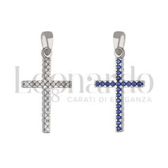 Ciondolo croce zirconi blu oro bianco
