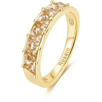 Anello da donna di Rosato della collezione Vittoria. Anello in argento 925/1000 con galvanica di colore oro giallo e cubic zirconia di colore champagne. Misura: 14. La referenza è: RZVT32B