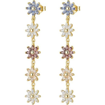 Orecchini da donna di Rosato della collezione Gaia. Orecchini in argento 925/1000 di colore oro con zirconi bianchi, fucsia, blu e champagne. La referenza è RZGA77